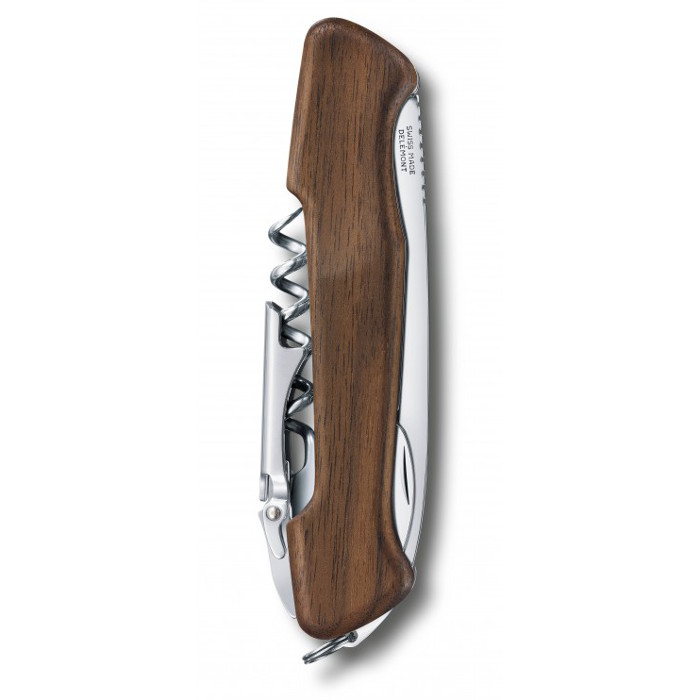 L’ouverture d’une bouteille de vin s’accompagne toujours d’un certain cérémonial. Ainsi, le Wine Master est un outil de haute qualité et de grande précision que sauront apprécier les amateurs de vin, les collectionneurs et tous ceux qui partent en pique-nique. Ce modèle se distingue par la longue mèche à 5 spires de son tire-bouchon qui évitera à ce dernier de se casser. L’utilisation du tire-bouchon est facilitée par une combinaison d’outils avec un double levier permettant de déboucher délicatement la bouteille. Un décapsuleur équipe également cet outil. En plus de sa grande lame, ce couteau est doté d’une lame dentée en forme de bec d’oiseau permettant de couper et détacher la capsule protégeant le bouchon. C’est la combinaison d’une grande lame et d’un tire-bouchons professionnel qui fait sa spécificité. Le Wine Master est disponible en deux versions élégantes: l’une avec côtes en noyer, l’autre avec côtes plus claires en olivier. Chaque couteau est accompagné d’un étui en cuir de belle facture. Avec le Wine Master, vous êtes paré pour déguster et apprécier vos bonnes bouteilles.