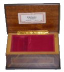 Nous gravons au magasin des plaquettes que nous appliquons sous le couvercle de la boite à musique.