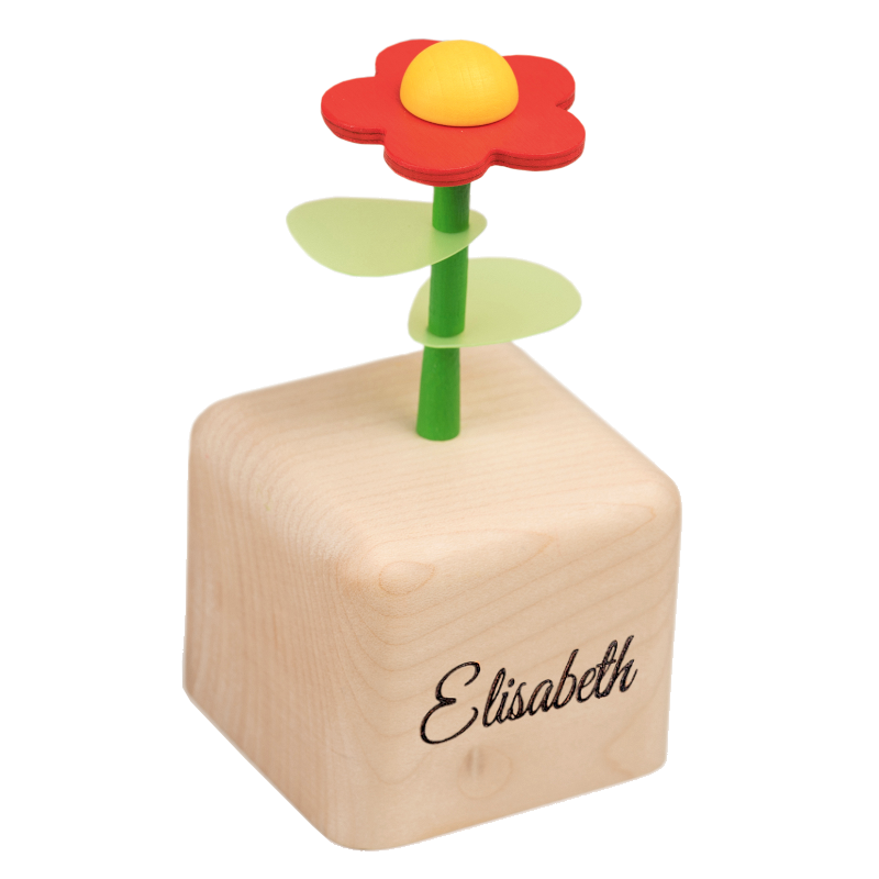 Boite à musique en bois en forme de fleur rouge