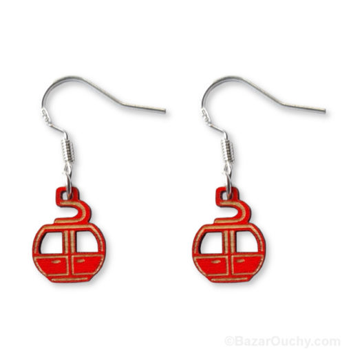 Boucle d’oreilles en bois en forme de petits télécabines.