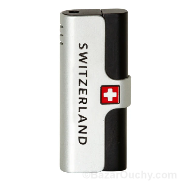Briquet à gaz avec flamme classique, avec inscription Switzerland en relief