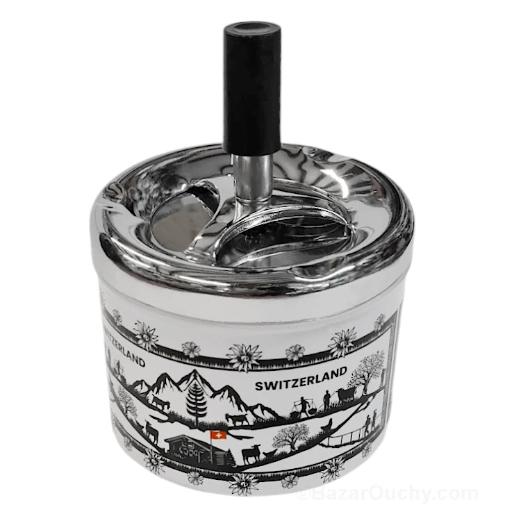 Cendrier en métal à poussoir avec motif découpage type poya