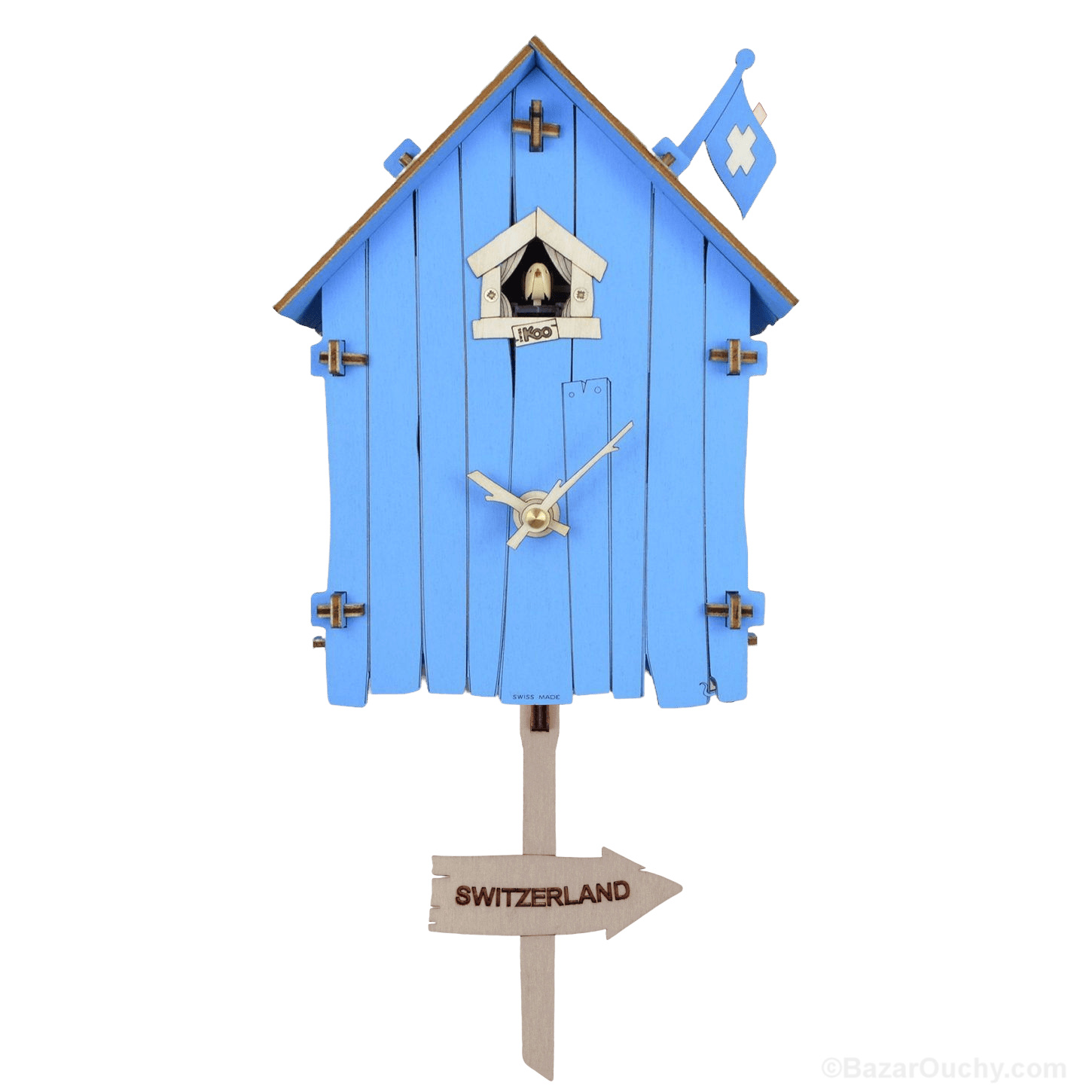 - Le boîtier et les décorations de l'horloge sont entièrement en bois, taillé et assemblé en Suisse (Lausanne) - Peintures et assemblage faits à la main