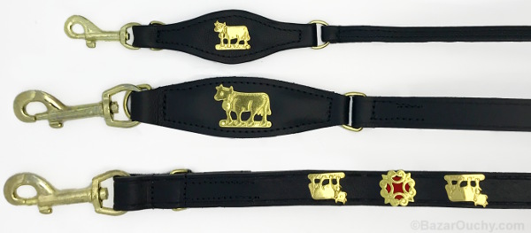 Comparaison entre laisse fine, laisse large à 1 motif et laisse large à 3 motifs
