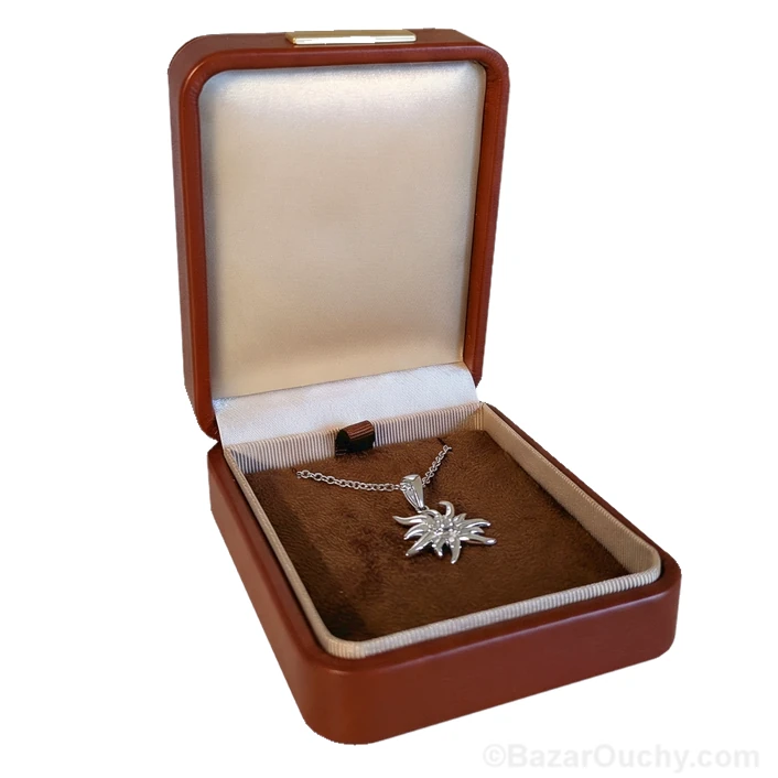 Pendentif Edelweiss Or blanc – Aigue-marine