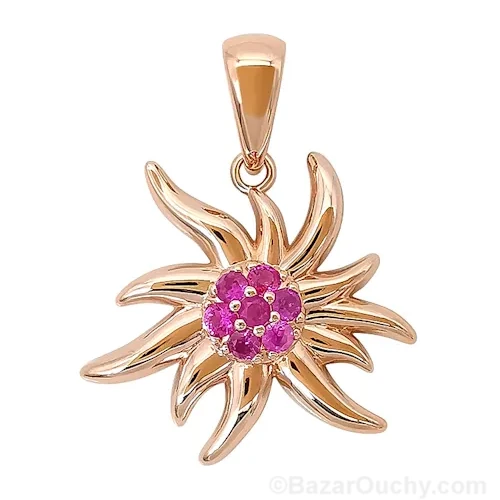 Pendentif Edelweiss Or rose – Saphir rose