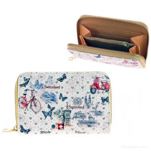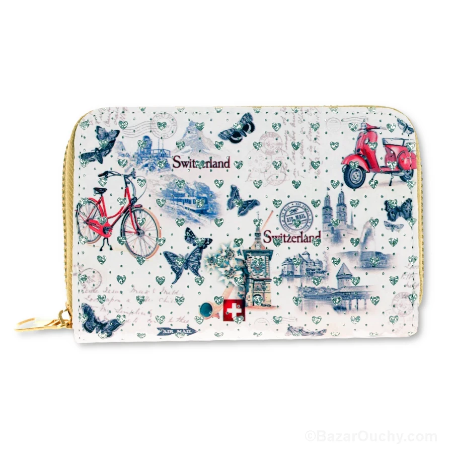 Porte-monnaie avec motifs suisses vintage et brillants.
