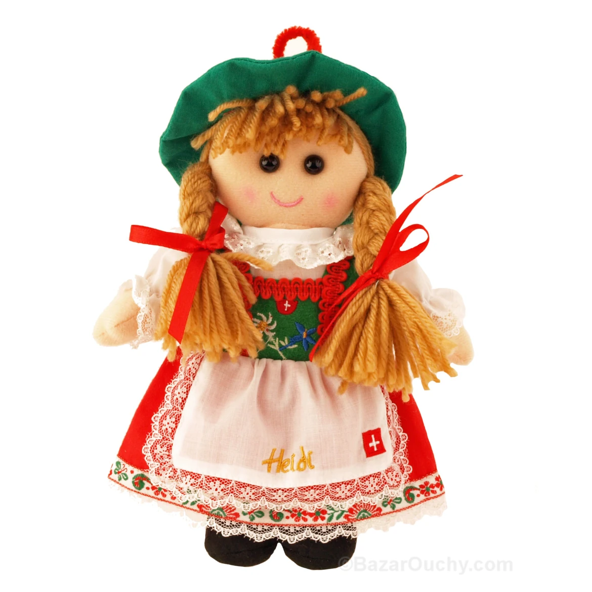 Poupée folklorique suisse, en tissu. Incassable.