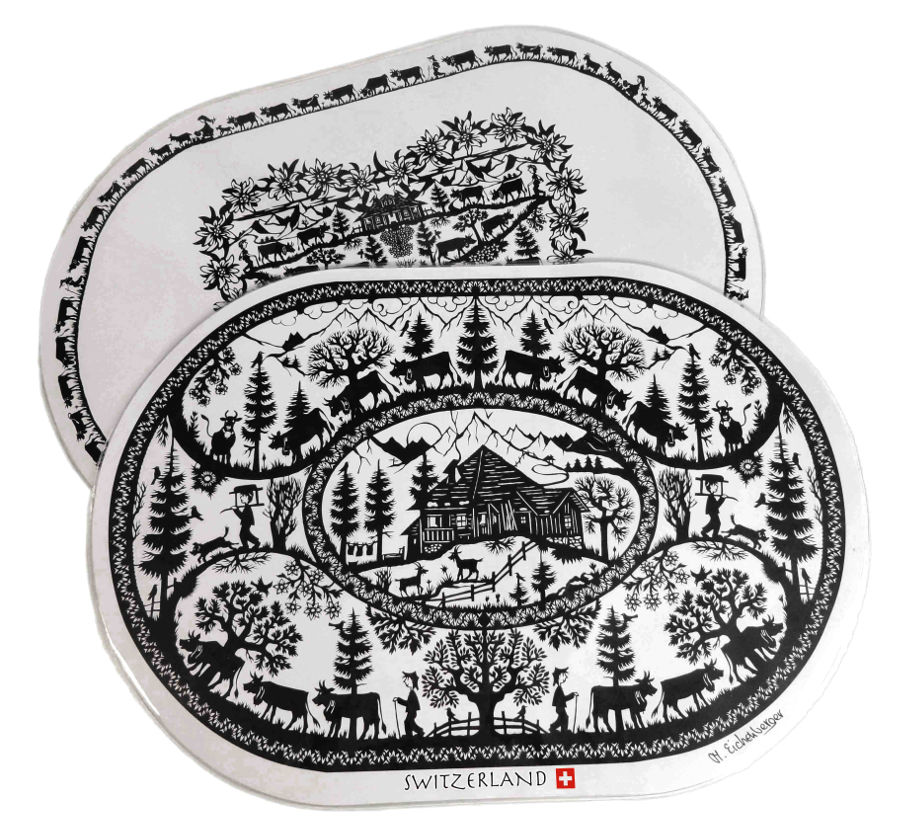 Deux motifs de découpage au ciseaux différents (un recto et un autre au verso), avec signature de l’artiste :