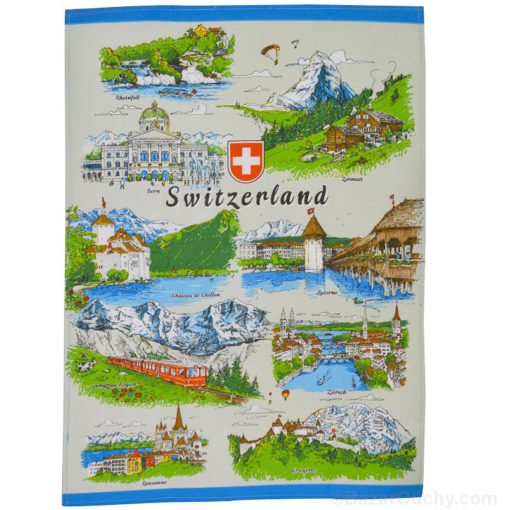 Torchon ou linge de cuisine en tissu avec villes suisses